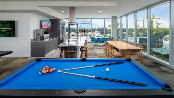 Bida mini tối ưu không gian chung cư: bố trí khéo léo 1–2 bàn, kết hợp vách ngăn kính – đa công năng nghỉ ngơi – thư giãn – tiết kiệm diện tích.