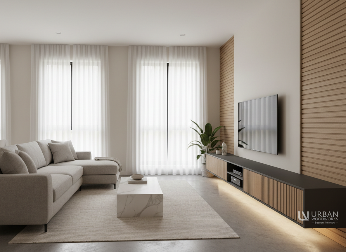 Các công ty thi công nội thất nhà phố hiện đại luôn ưu tiên vật liệu xanh như gỗ MDF chuẩn CARB-P2, chống ẩm tốt – đạt tiêu chuẩn an toàn sức khỏe.