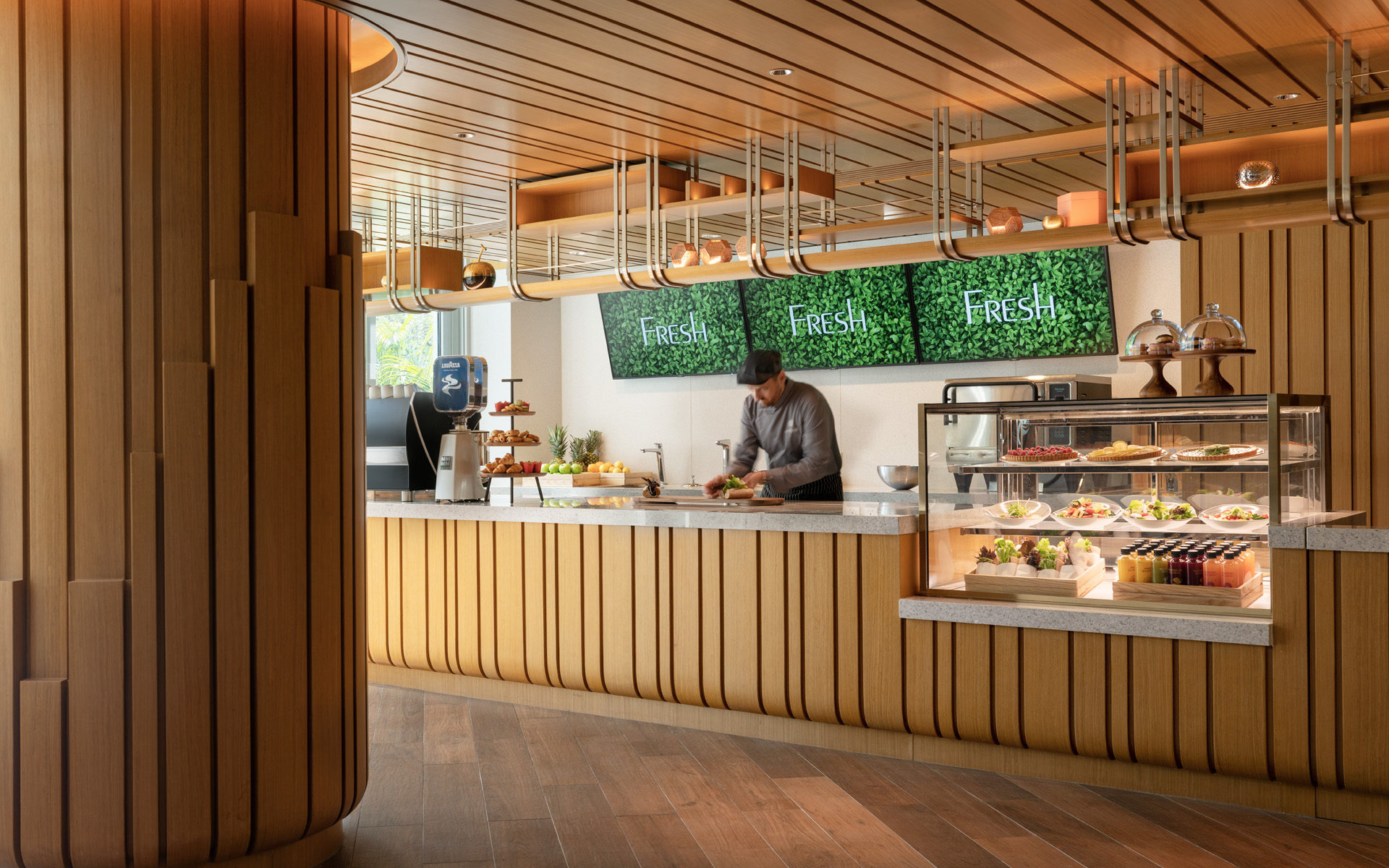 Kết hợp chức năng pha chế, trưng bày và thanh toán trong cùng một quầy. Thiết kế này tối ưu hóa không gian, giúp nhân viên xử lý công việc hiệu quả hơn trong môi trường làm việc hạn chế diện tích.