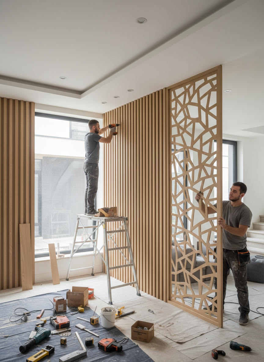 Ốp lam gỗ – nan gỗ – vách CNC.