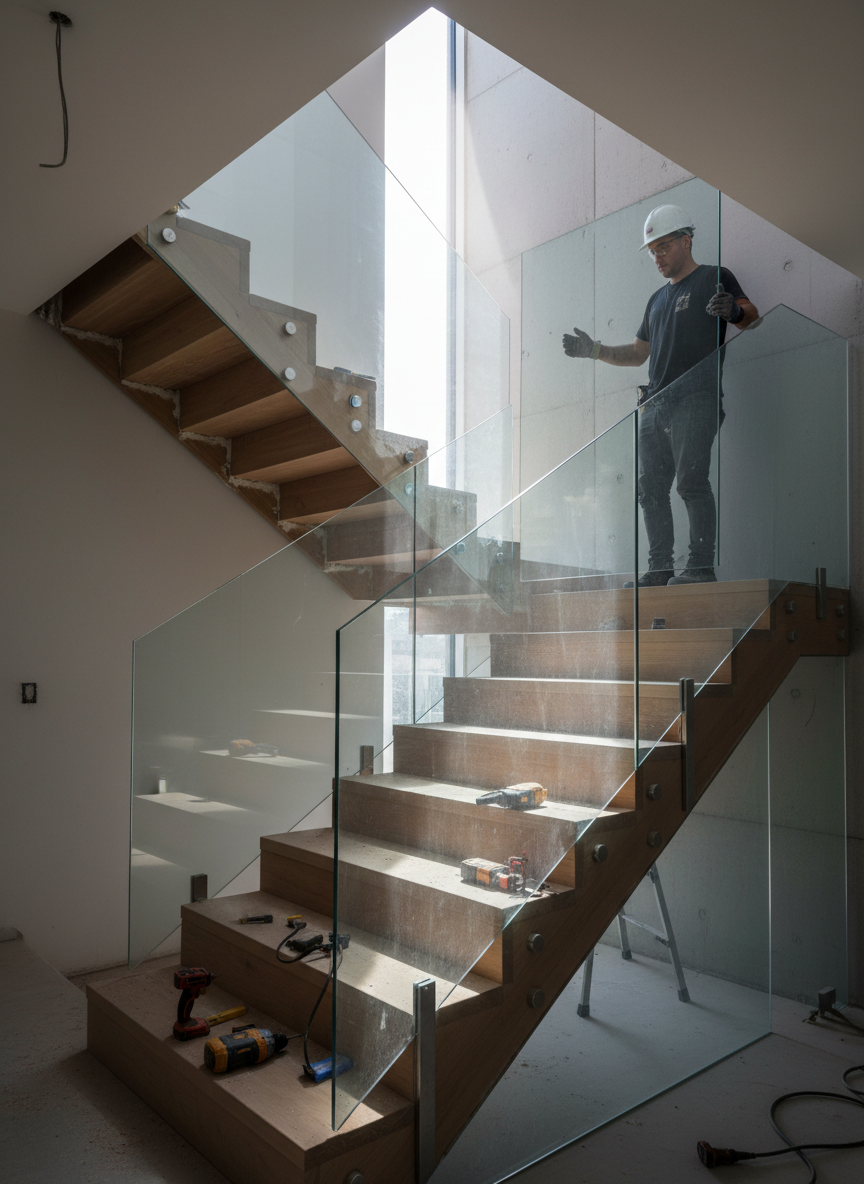 3.6. Thi công cầu thang – lan can – lam trang trí