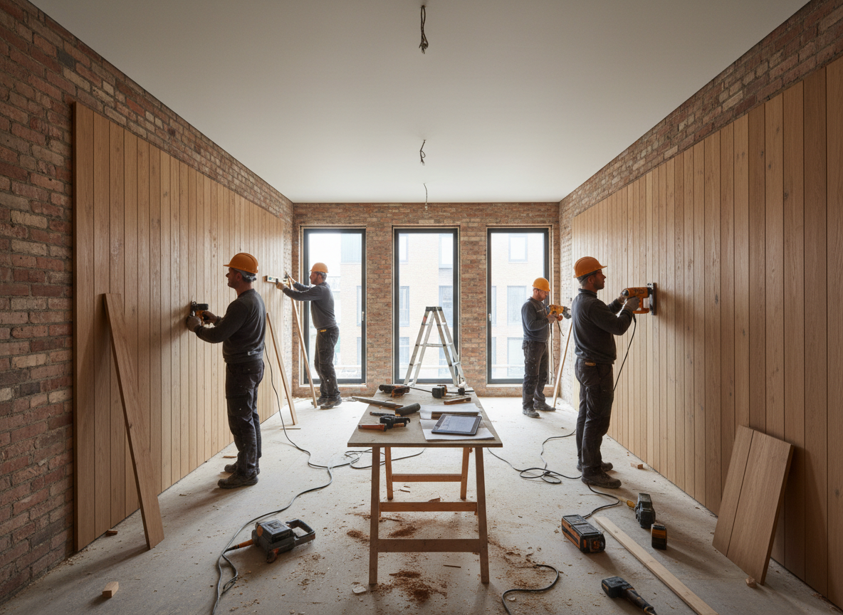 Ốp tường bằng lam gỗ, PVC giả đá, MDF sơn PU hoặc veneer