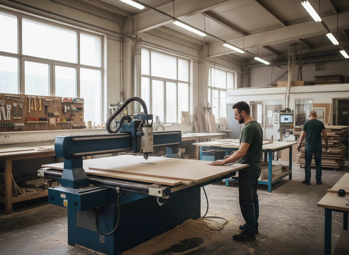 Đơn vị thi công uy tín luôn có xưởng sản xuất riêng, được trang bị máy móc hiện đại như máy CNC, máy dán cạnh tự động, máy ép laminate, máy cắt panel, máy khoan liên kết, giúp đảm bảo độ chính xác từng chi tiết và đồng nhất chất lượng của toàn bộ sản phẩm; trước khi xuất xưởng, tất cả sản phẩm đều được kiểm tra kỹ lưỡng về độ phẳng, độ bo cạnh, màu sắc, độ dày, mức hoàn thiện và khả năng lắp ráp.