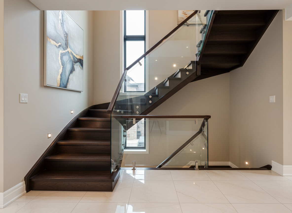 Nhà phố thường có cầu thang ở giữa hoặc gần cửa ra vào, vì vậy việc thi công lan can kính, tay vịn gỗ, tủ cầu thang, trang trí lam gỗ… là rất cần thiết để vừa tăng thẩm mỹ vừa tăng công năng.
