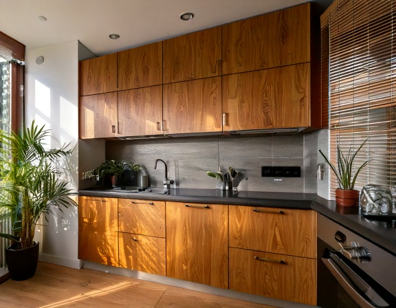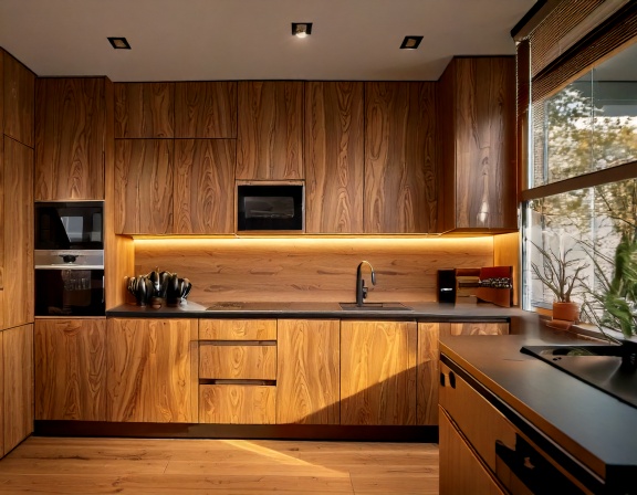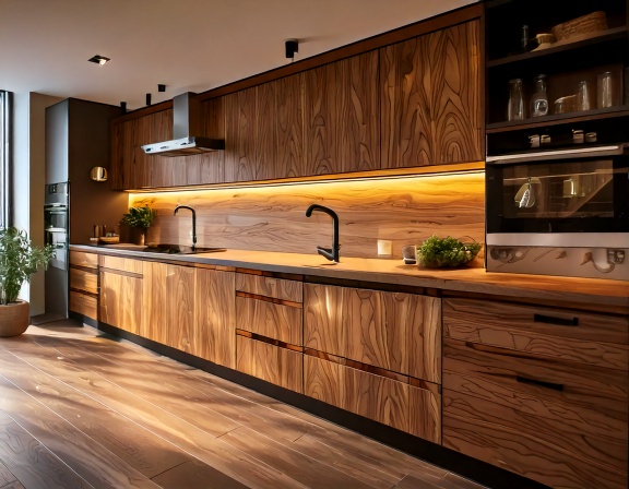 Chất liệu là yếu tố quyết định đến hơn 70% giá trị của một bộ tủ bếp cao cấp. Trong đó, gỗ tự nhiên cao cấp như óc chó, sồi, gõ đỏ… thường được lựa chọn cho các không gian bếp sang trọng, biệt thự hoặc nhà phố cao cấp. Gỗ tự nhiên mang lại vẻ đẹp ấm cúng, sang trọng và có độ bền rất cao nếu được xử lý đúng kỹ thuật.