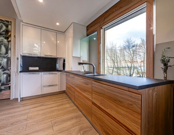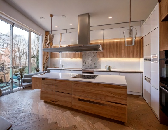 Gỗ tự nhiên vẫn được nhiều gia đình yêu thích bởi vẻ đẹp sang trọng, độ bền cao và giá trị sử dụng lâu dài. Các loại gỗ thường dùng như gỗ sồi, xoan đào, óc chó, gõ đỏ… mang lại cảm giác ấm áp và đẳng cấp cho không gian bếp. Tuy nhiên, chi phí gỗ tự nhiên cao hơn và yêu cầu xử lý kỹ thuật tốt để hạn chế cong vênh trong môi trường ẩm nóng của nhà bếp.