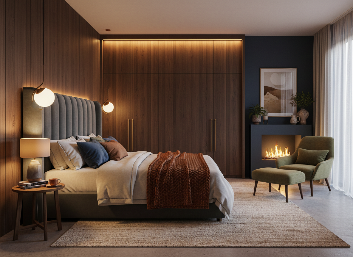 Tủ quần áo âm tường là lựa chọn hoàn hảo cho nhà phố, giúp tiết kiệm diện tích và tạo cảm giác không gian thoáng hơn. Ánh sáng cũng là yếu tố quan trọng – việc tận dụng ánh sáng tự nhiên kết hợp với đèn ngủ dịu nhẹ giúp tạo nên không khí thư giãn hoàn hảo. Những mẫu phòng ngủ hiện nay còn ưu tiên sử dụng các phụ kiện decor đơn giản như tranh treo, kệ treo tường hay tủ trang trí nhỏ để tạo điểm nhấn tinh tế mà không gây rối mắt.