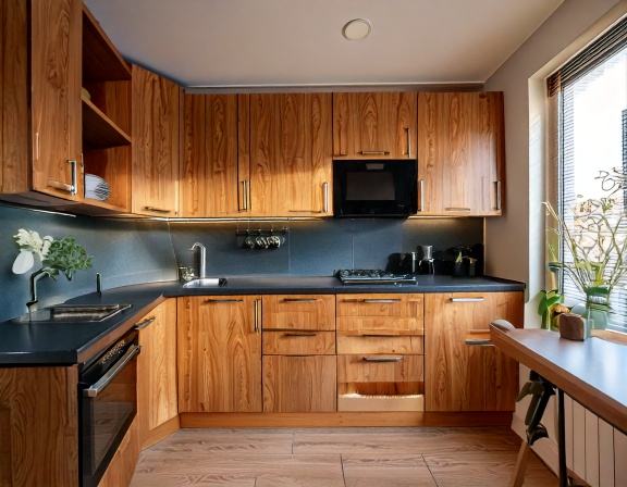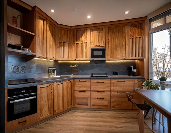 Bên cạnh đó, tủ bếp gỗ tự nhiên cũng là lựa chọn của nhiều gia đình yêu thích sự sang trọng và độ bền cao. Các loại gỗ thường được sử dụng gồm gỗ sồi, gỗ óc chó, gỗ xoan đào, gỗ căm xe… Tủ bếp gỗ tự nhiên đóng theo yêu cầu mang vẻ đẹp ấm cúng, đẳng cấp và có thể sử dụng bền bỉ hàng chục năm nếu được xử lý và thi công đúng kỹ thuật.