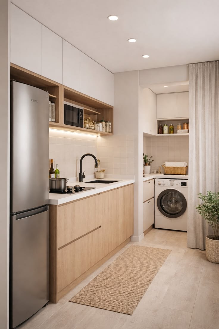 Ngoài ra, đá nhân tạo và inox cũng được sử dụng trong các hạng mục cần độ bền cao và chống nước tuyệt đối như mặt bếp, lavabo, quầy pha chế. Sự kết hợp giữa các vật liệu này giúp tạo nên không gian vừa bền chắc vừa thẩm mỹ.