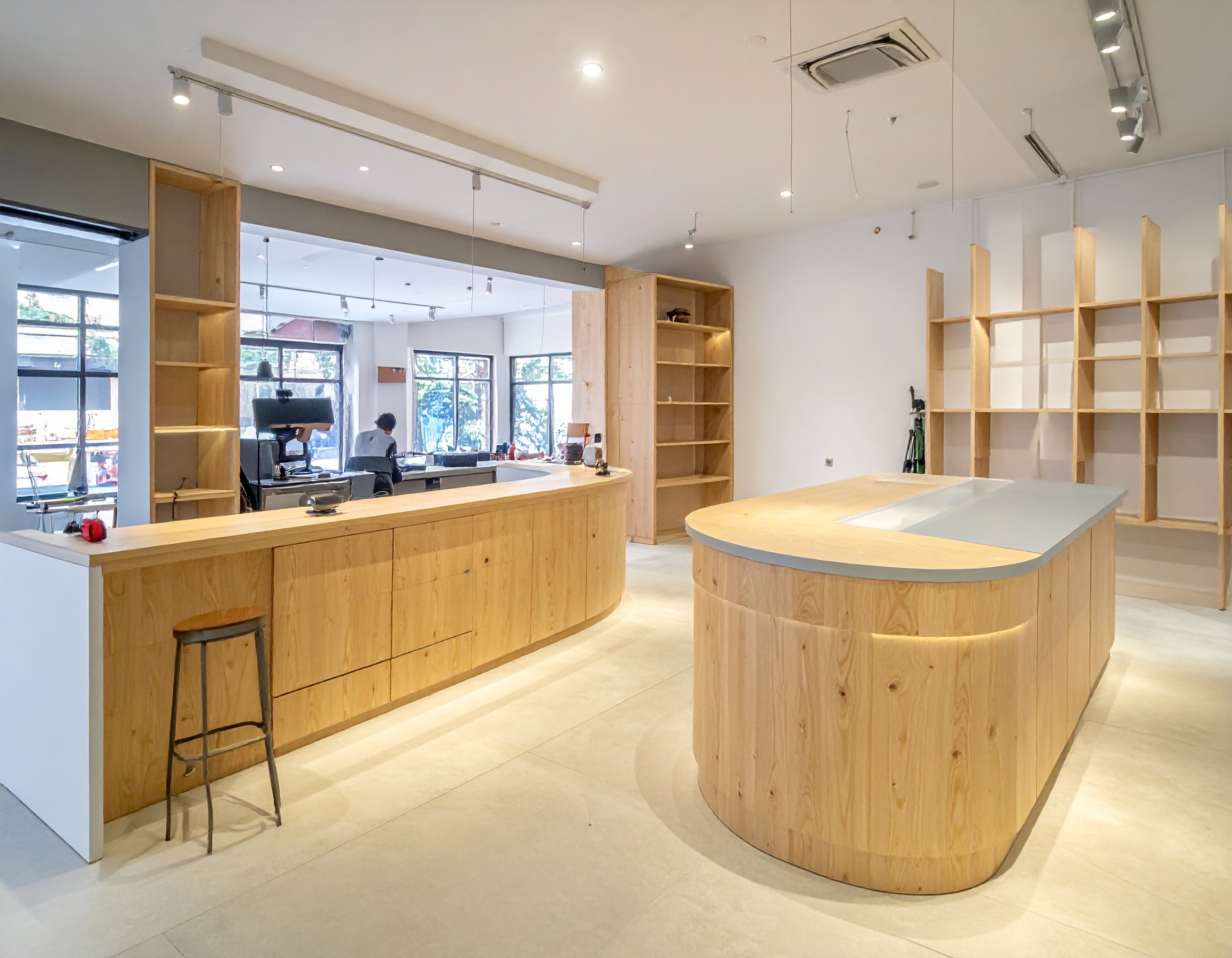 Bên cạnh đó, nhiều quán hiện nay còn lựa chọn quầy pha chế kết hợp quầy thu ngân và trưng bày để tối ưu diện tích và tạo điểm nhấn cho không gian quán.