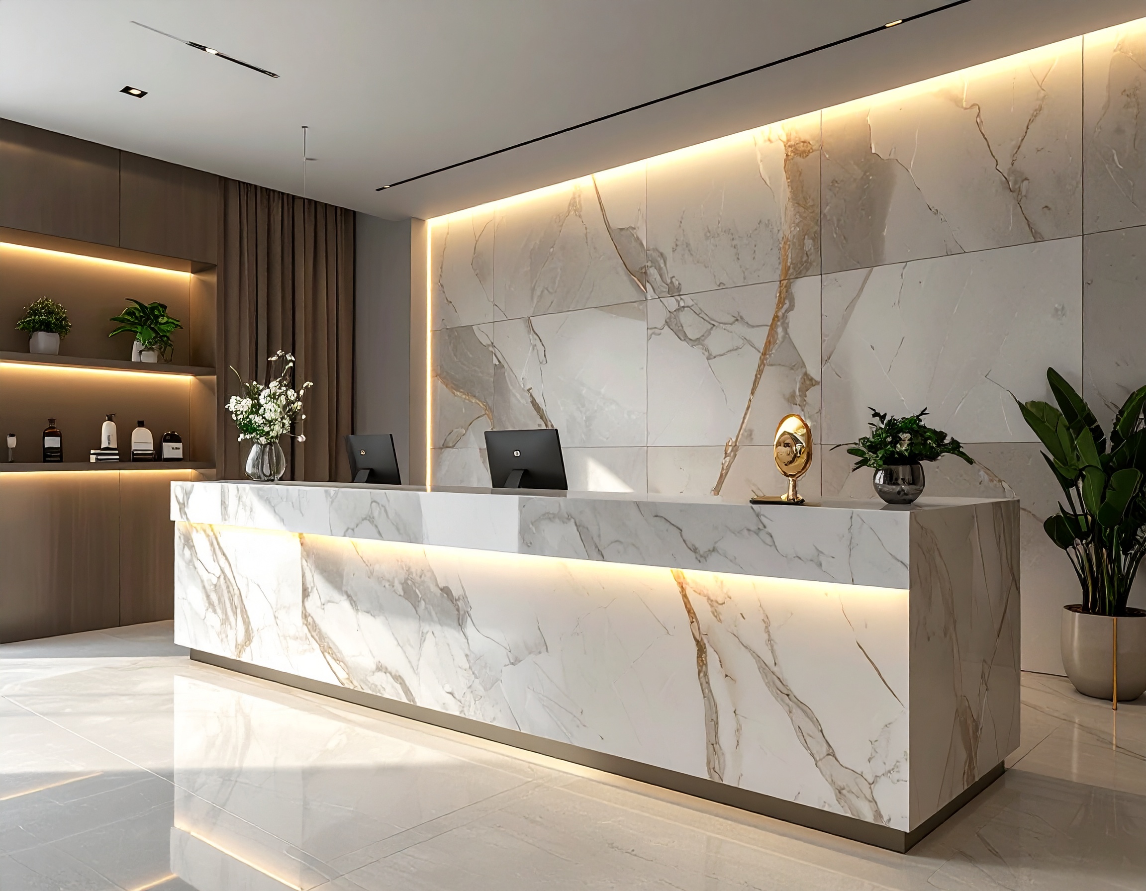 Trong môi trường văn phòng, quầy lễ tân giúp tạo ấn tượng chuyên nghiệp và là nơi tiếp nhận thông tin khách hàng hiệu quả. Đối với spa và thẩm mỹ viện, quầy lễ tân không chỉ là nơi đón tiếp mà còn đóng vai trò trưng bày sản phẩm và tạo cảm giác sang trọng.