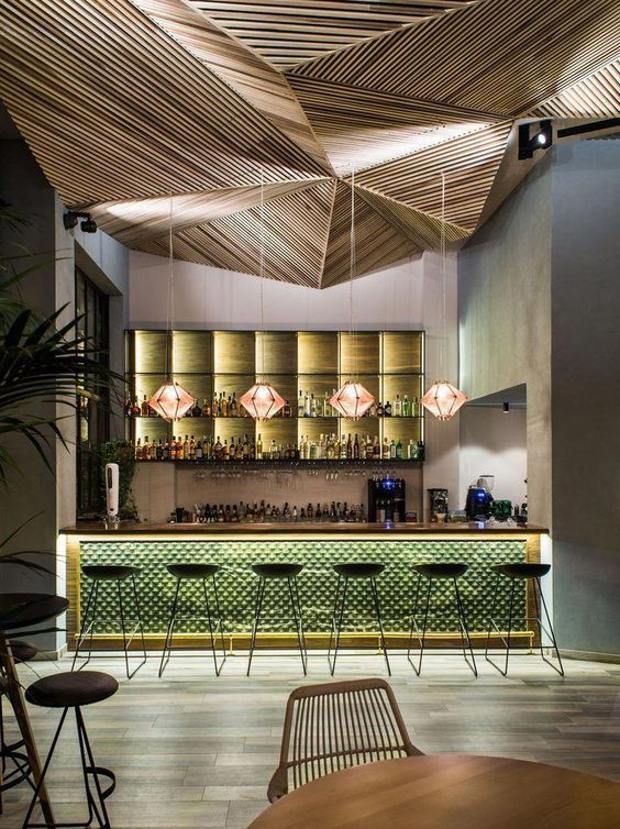 - Quán bar: Được thiết kế để thu hút ánh nhìn, giúp bartender dễ dàng phục vụ hiệu quả và tạo điểm nhấn cho không gian giải trí.