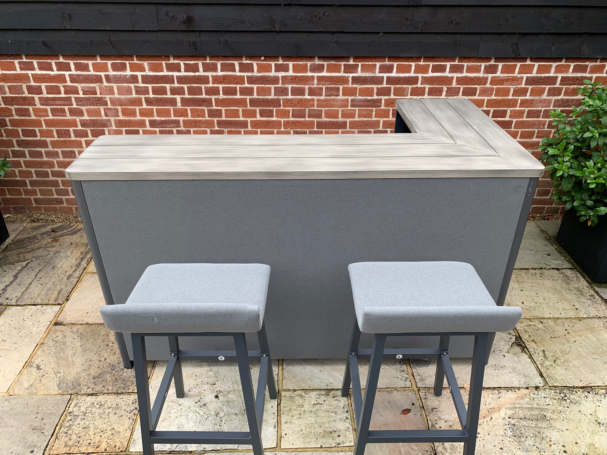 Một cạnh dùng làm chỗ khách nhận nước, một cạnh để pha chế nhanh gọn