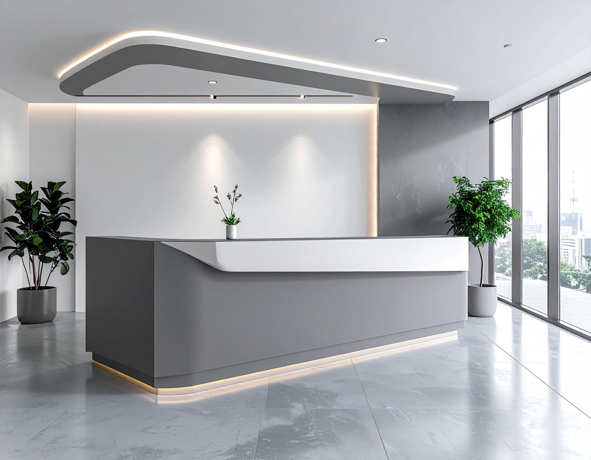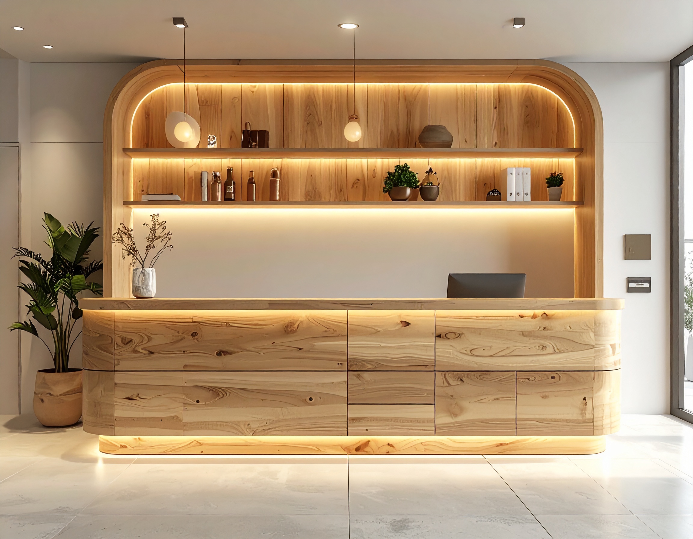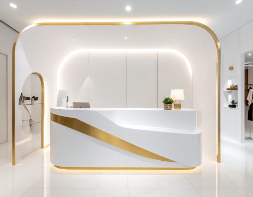Không chỉ tiết kiệm diện tích, mẫu quầy này còn giúp tối ưu chi phí đầu tư nhờ thiết kế đơn giản nhưng hiệu quả. Với sự kết hợp giữa công năng và thẩm mỹ, quầy lễ tân chữ L đang trở thành xu hướng được nhiều doanh nghiệp lựa chọn trong thiết kế nội thất hiện đại.