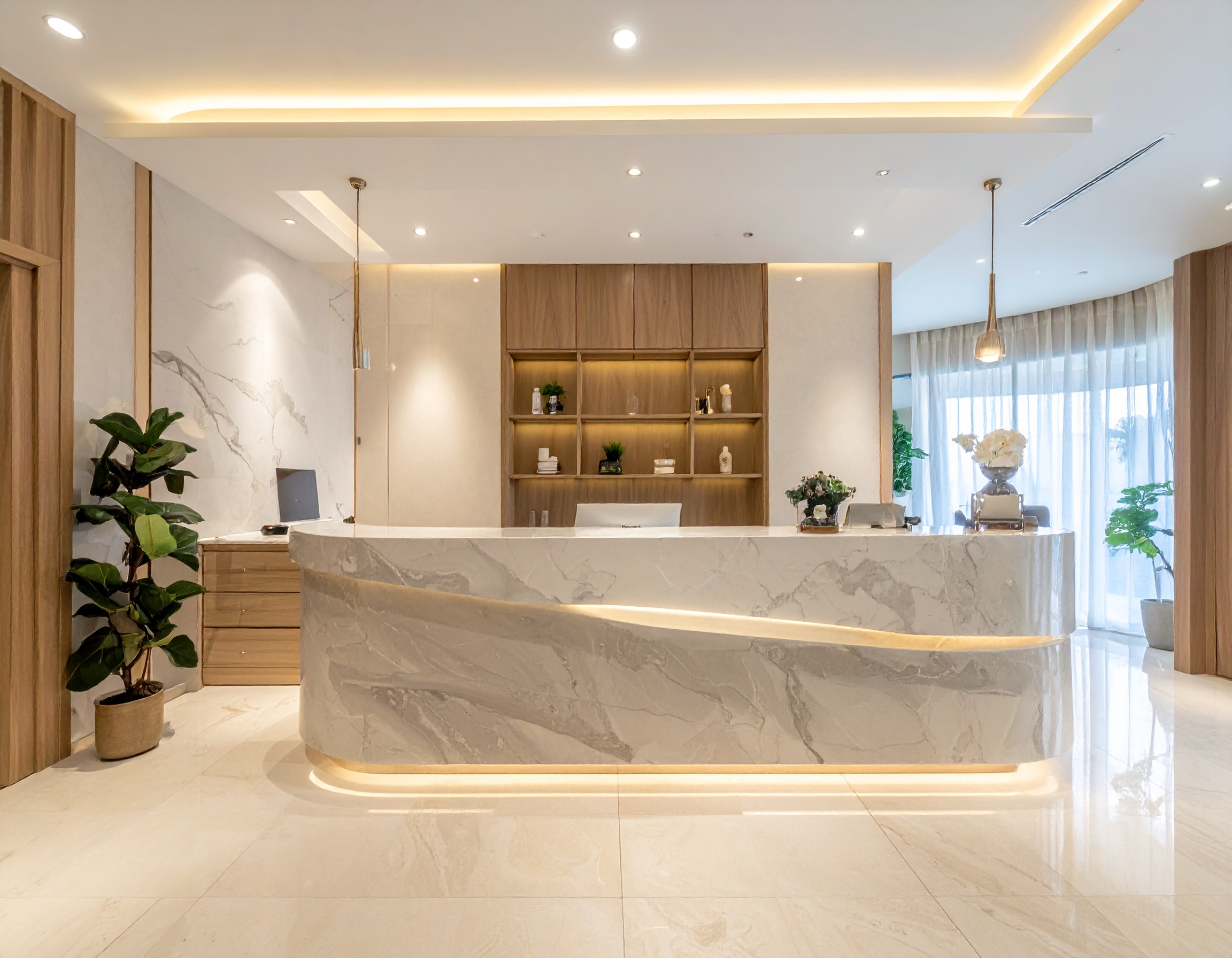 Quầy lễ tân spa sang trọng giá rẻ là lựa chọn hoàn hảo dành cho các chủ spa, thẩm mỹ viện hoặc salon làm đẹp đang tìm kiếm giải pháp tối ưu chi phí nhưng vẫn đảm bảo tính thẩm mỹ và chuyên nghiệp. Sản phẩm được thiết kế theo phong cách hiện đại, tinh tế với đường nét mềm mại, tạo ấn tượng ngay từ cái nhìn đầu tiên khi khách hàng bước vào không gian spa.