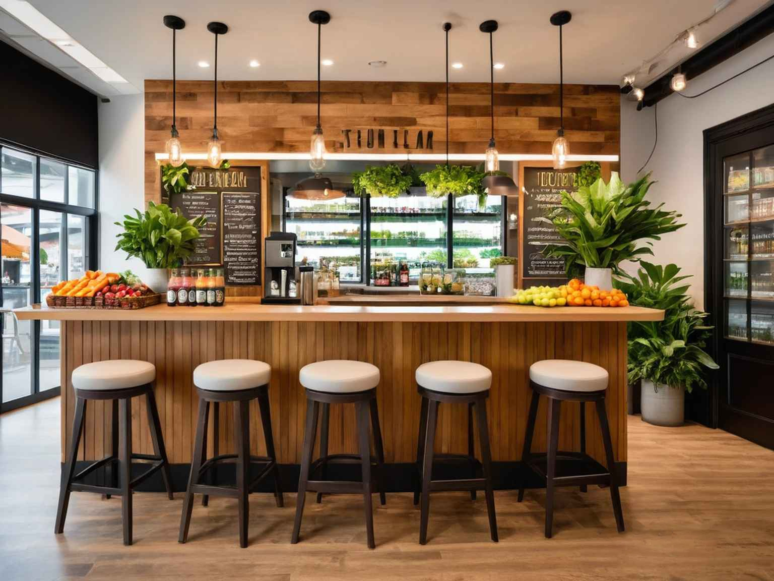 – **Tiệm nước ép và sinh tố**: Tối ưu hóa quy trình làm việc với các bức tường tự nhiên hoặc màu sắc tươi sáng.