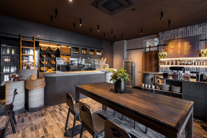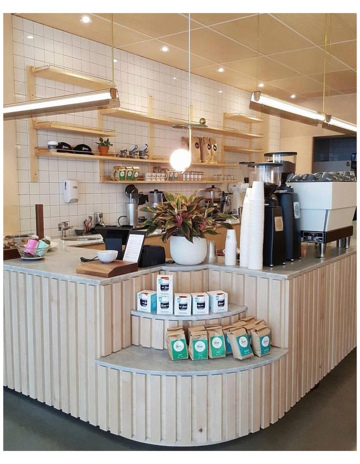 Một quầy gỗ thiết kế riêng theo màu sắc và logo thương hiệu sẽ giúp khách hàng dễ ghi nhớ quán, từ đó tăng độ nhận diện thương hiệu một cách tự nhiên.