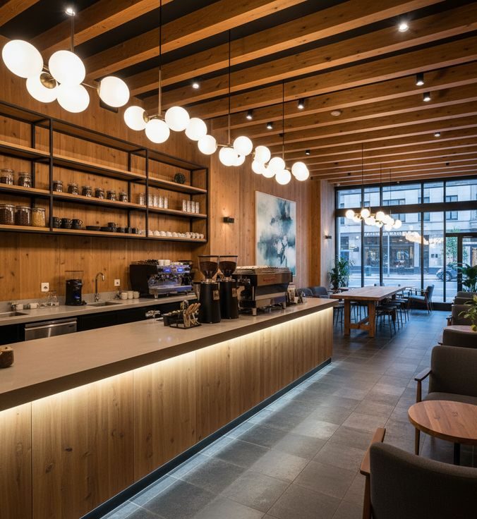 Quầy Pha Chế Gỗ Melamine – Giải Pháp Nội Thất Bền Đẹp, Tiết Kiệm Cho Quán Cafe
