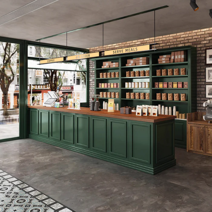 🔹 Quầy pha chế kết hợp kệ trưng bày