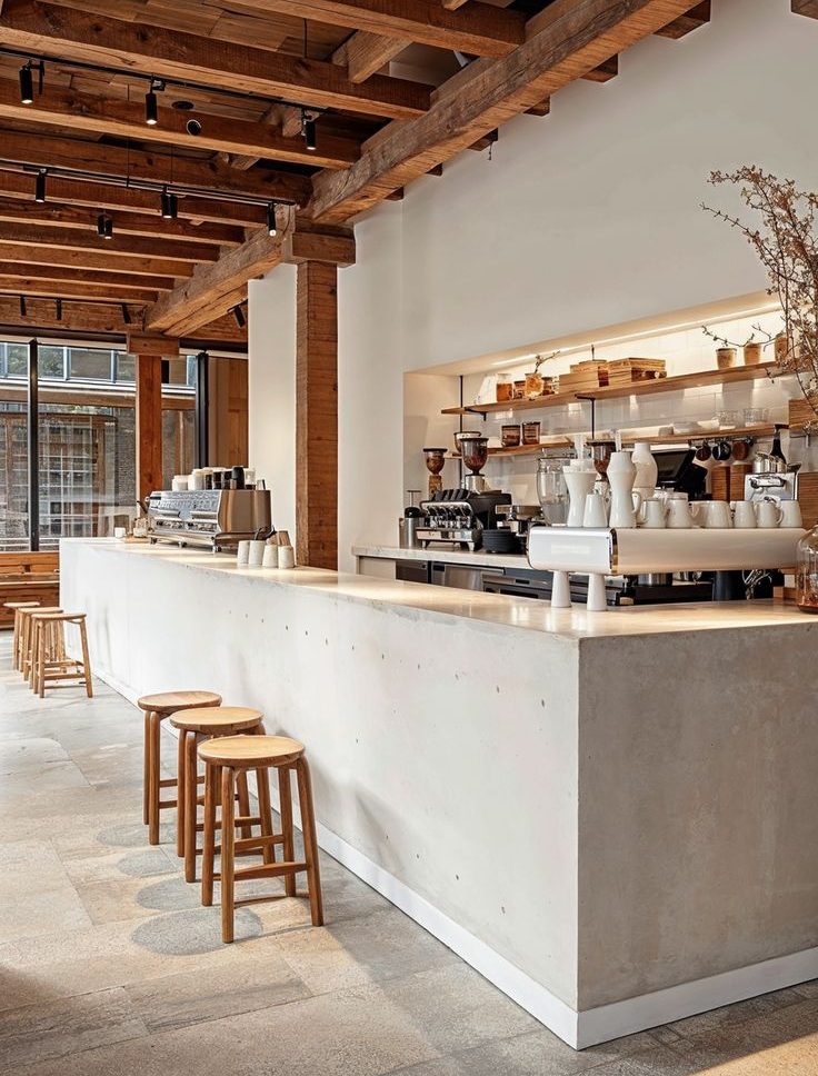 Ngoài ra, nhiều quán cafe hiện đại lựa chọn quầy pha chế tối giản với đường nét gọn gàng và màu sắc trung tính. Thiết kế tối giản giúp không gian trở nên rộng rãi và tinh tế hơn, đồng thời dễ dàng kết hợp với nhiều phong cách nội thất khác nhau.