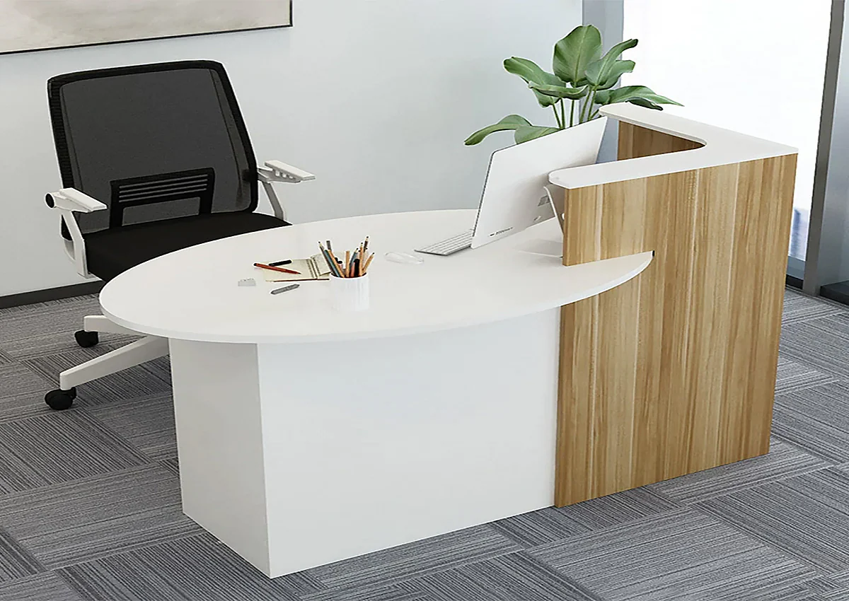 Mặt bàn tùy chọn đá nhân tạo hoặc gỗ nhẵn bóng cao cấp.