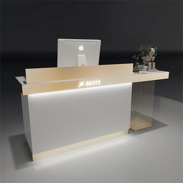 - Hệ thống đèn LED tích hợp mang lại ánh sáng êm dịu, làm nổi bật không gian thanh lịch của quầy thu ngân.