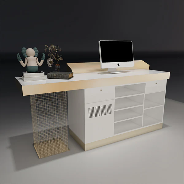 Quầy thu ngân: đa dạng kiểu dáng (mini, chữ L, chữ U, kết hợp tủ trưng bày, có logo thương hiệu…).