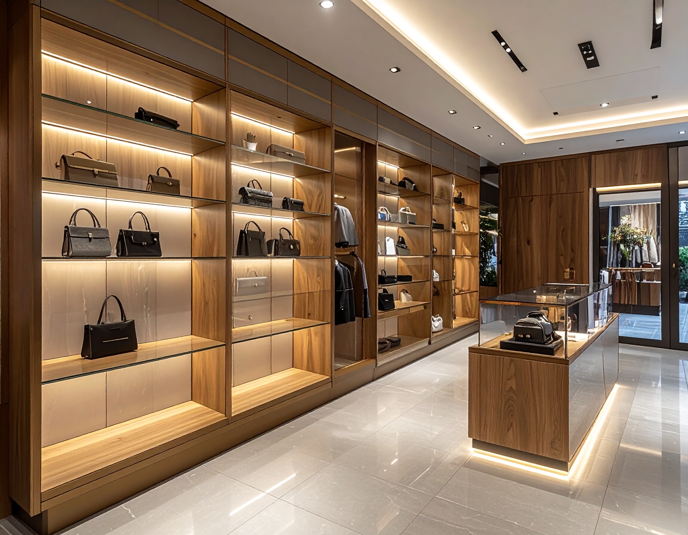 Bên cạnh đó, tủ trưng bày gỗ cũng được rất nhiều shop lựa chọn. Với chất liệu gỗ MDF phủ Melamine hoặc gỗ công nghiệp cao cấp, loại tủ này có độ bền cao, giá thành hợp lý và phù hợp với nhiều phong cách thiết kế cửa hàng khác nhau. Tủ gỗ thường được sử dụng trong các shop thời trang, shop phụ kiện, cửa hàng mỹ phẩm hoặc cửa hàng quà tặng.