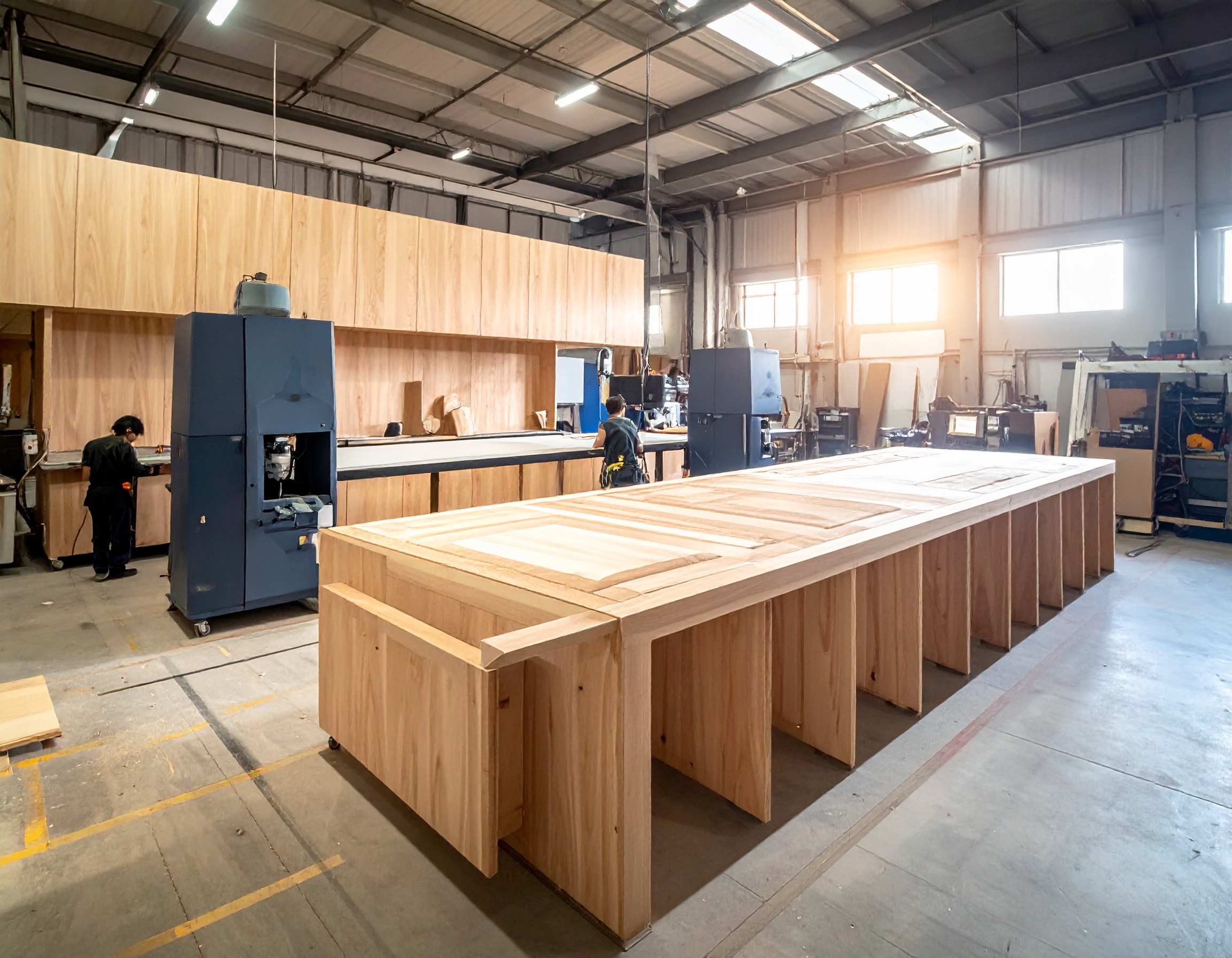 Tiếp theo là gia công tại xưởng. Với hệ thống máy móc hiện đại cùng đội ngũ thợ lành nghề, các chi tiết của quầy pha chế được sản xuất chính xác và đảm bảo độ bền cao.
