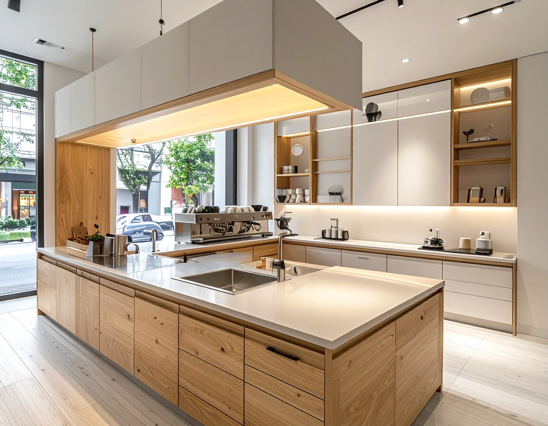 Các khu vực chức năng được bố trí theo nguyên tắc một chiều, từ khâu chuẩn bị nguyên liệu, pha chế, hoàn thiện đến giao đồ uống. Điều này giúp giảm thiểu di chuyển chồng chéo, hạn chế va chạm giữa nhân viên trong giờ cao điểm. Đồng thời, hệ thống ổ điện âm bàn, đường cấp thoát nước và vị trí đặt máy được tính toán khoa học để đảm bảo an toàn.