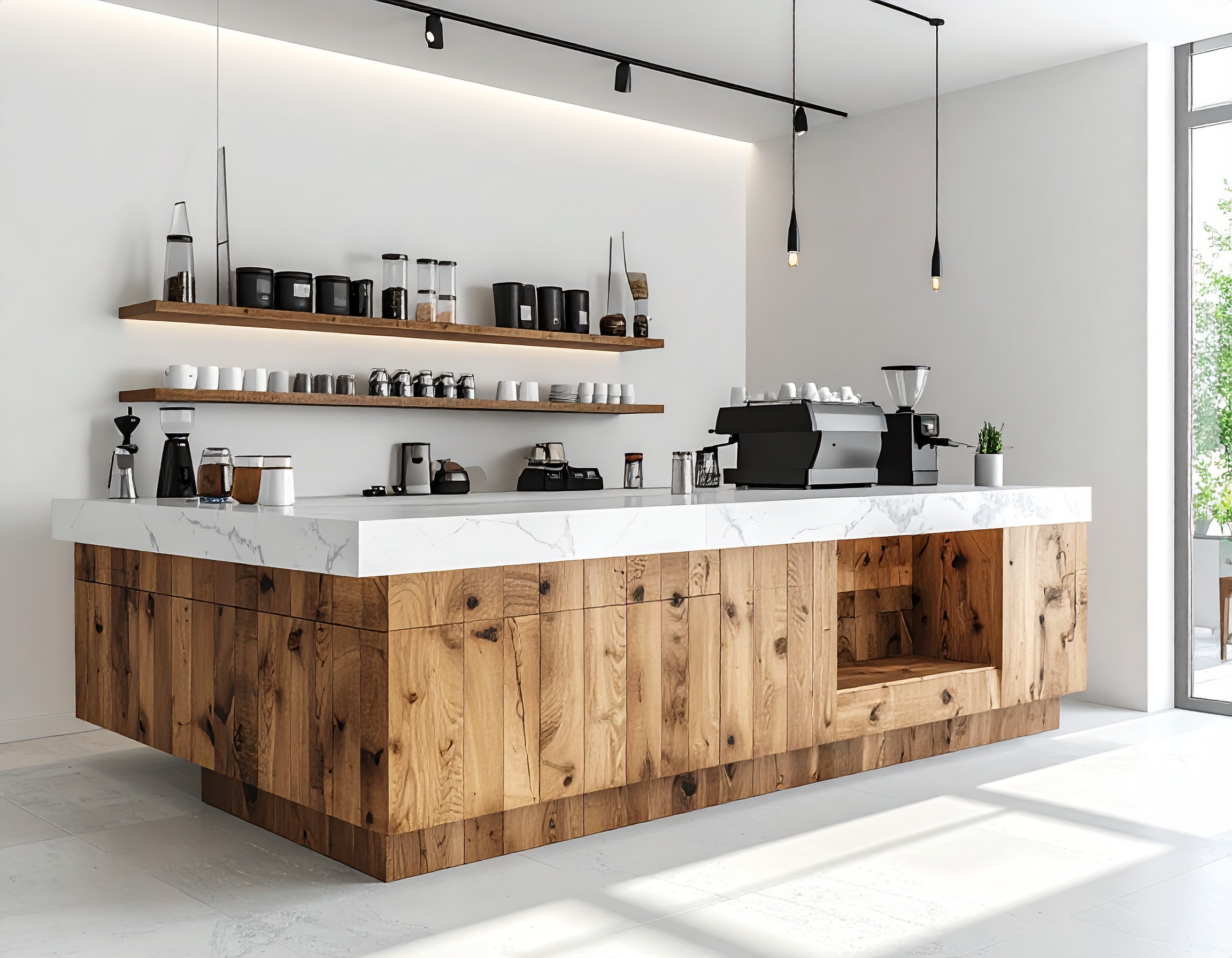 Xu hướng thiết kế quầy pha chế cafe chuyên dụng đang dần chuyển từ kiểu cầu kỳ sang tối ưu công năng và cá nhân hóa theo thương hiệu. Thay vì những quầy quá nhiều chi tiết trang trí, các quán hiện nay ưu tiên sự gọn gàng, tiện dụng và dễ vận hành.