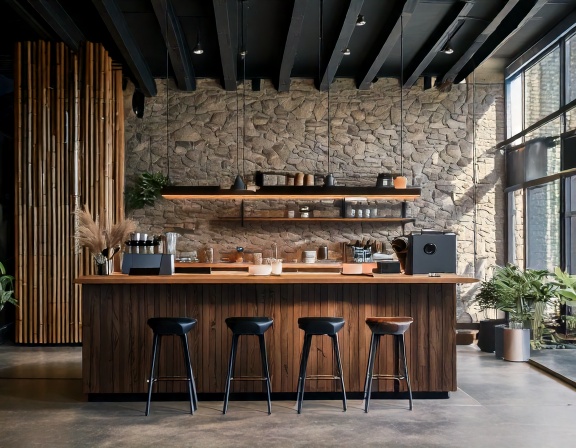 Ngoài ra, quầy pha chế cafe gỗ công nghiệp phủ melamine hoặc laminate đang là lựa chọn phổ biến nhờ độ bền cao, dễ vệ sinh, màu sắc đa dạng và giá thành hợp lý. Bluecons thường tư vấn khách hàng lựa chọn vật liệu phù hợp với ngân sách nhưng vẫn đảm bảo tuổi thọ lâu dài.