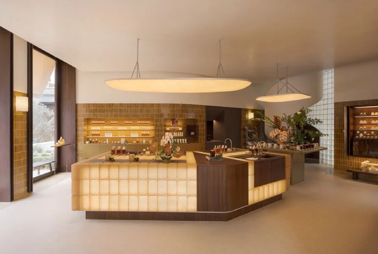 Phong cách tân cổ điển lại mang hơi hướng sang trọng, mềm mại với phào chỉ nhẹ, màu sắc trầm ấm như nâu gỗ đậm, kem, be hoặc xanh rêu. Quầy pha chế cafe sang trọng theo phong cách này thường sử dụng đá marble vân tự nhiên kết hợp đèn hắt vàng ấm tạo nên cảm giác ấm cúng, đẳng cấp.