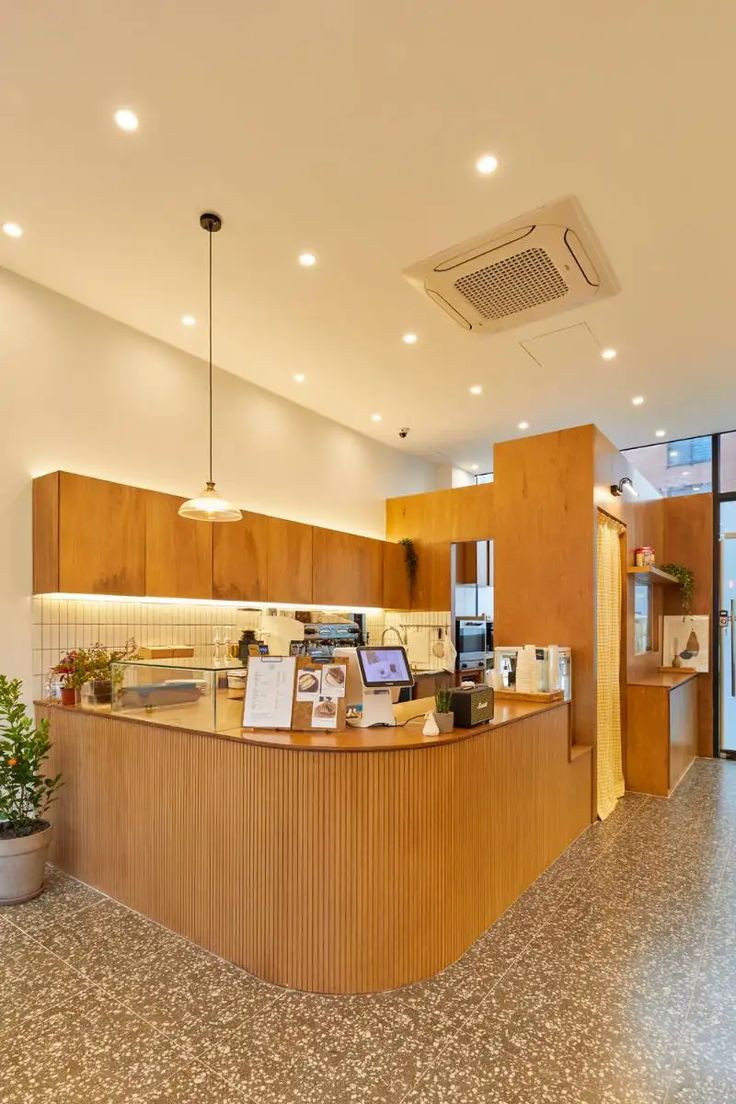 Với mô hình cafe take away diện tích nhỏ, quầy pha chế gỗ thường thiết kế dạng chữ I hoặc chữ L gọn gàng, tích hợp khu vực thu ngân phía trước và pha chế phía sau. Tập trung vào tối ưu không gian và tăng tốc độ phục vụ. Bluecons sẽ bố trí hộc tủ và kệ mở thông minh để tận dụng tối đa từng centimet diện tích.
