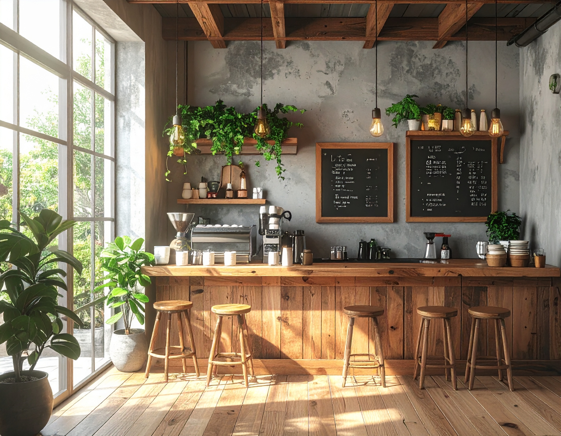 Với mô hình cafe sân vườn hoặc cafe phong cách mộc, quầy pha chế gỗ bền lại đóng vai trò như một điểm nhấn thẩm mỹ. Chất liệu gỗ tự nhiên hoặc gỗ công nghiệp vân gỗ mang đến cảm giác ấm áp, gần gũi, đồng thời tạo sự đồng bộ với tổng thể không gian.