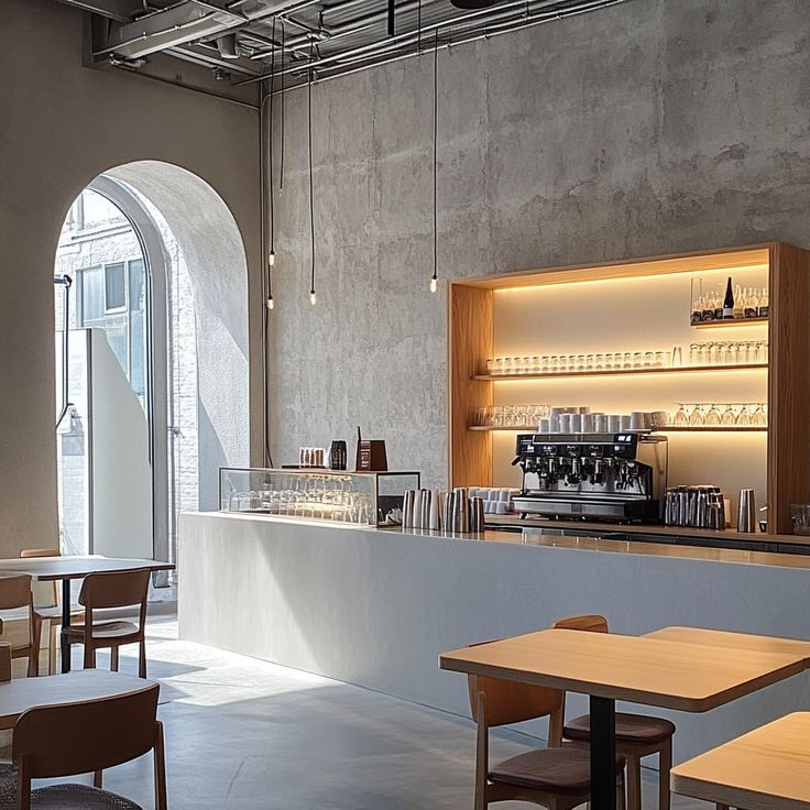 Đối với quán cà phê hiện đại, quầy thường thiết kế mở, kết hợp quầy thu ngân phía trước và khu vực pha chế phía sau, tạo sự tương tác trực tiếp với khách hàng. Gỗ tông sáng hoặc vân tự nhiên mang lại cảm giác ấm áp, thân thiện.