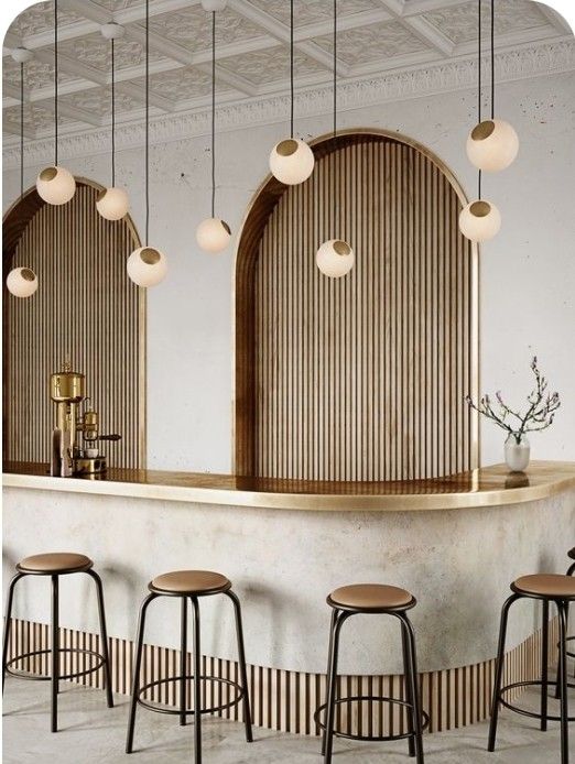 Trong nhà hàng, khách sạn hoặc quầy bar mini, quầy pha chế gỗ chất lượng cao thường kết hợp thêm hệ đèn LED trang trí, mặt đá cao cấp và chi tiết kim loại mạ vàng hoặc sơn tĩnh điện, tạo vẻ sang trọng và đẳng cấp.
