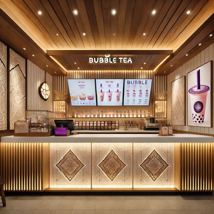 Xu hướng hiện nay là kết hợp gỗ chống nước với đá sáng màu và hệ thống đèn LED âm tạo hiệu ứng hiện đại. Phong cách tối giản nhưng tinh tế được nhiều chủ quán lựa chọn vì dễ phối hợp với nhiều concept khác nhau.