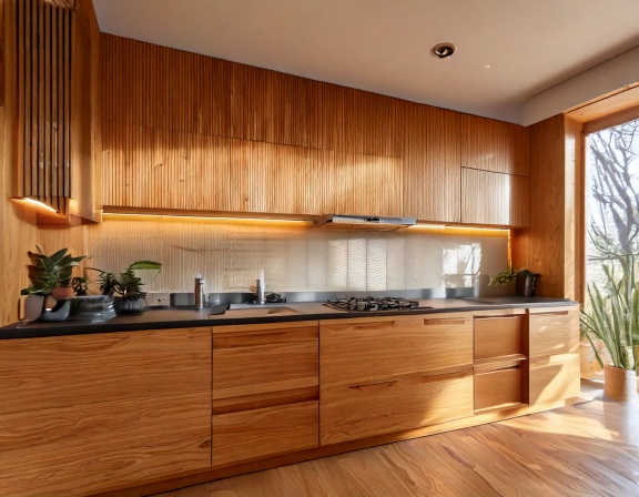 Gỗ tự nhiên mang đến vẻ đẹp sang trọng, vân gỗ tự nhiên tinh tế và độ bền cao theo thời gian. Các loại gỗ như sồi, xoan đào, căm xe thường được sử dụng cho những công trình cao cấp, biệt thự hoặc không gian bếp theo phong cách cổ điển, tân cổ điển. Tuy nhiên, gỗ tự nhiên có giá thành cao và yêu cầu quy trình xử lý chống cong vênh, mối mọt nghiêm ngặt để đảm bảo độ ổn định lâu dài.