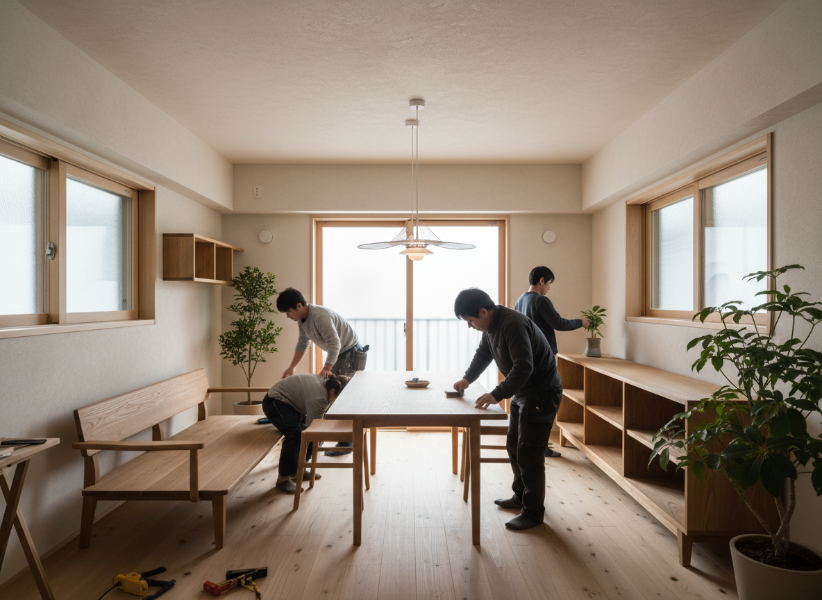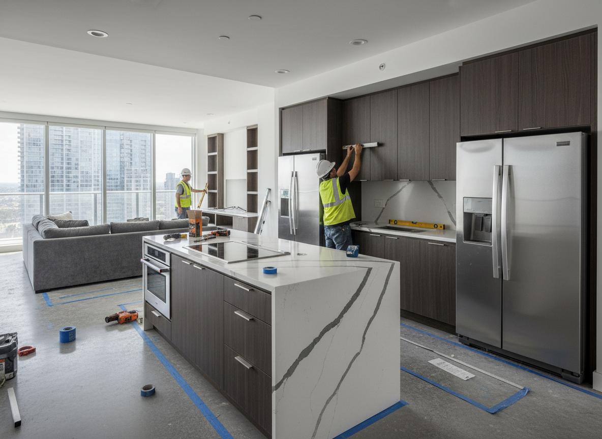 Thi công hoàn thiện nội thất chung cư là toàn bộ quá trình triển khai lắp đặt, hoàn thiện các hạng mục nội thất bên trong căn hộ sau khi đã có bản vẽ thiết kế hoặc theo phương án thống nhất với gia chủ. Công việc này bao gồm từ phần hoàn thiện tường, trần, sàn cho đến sản xuất – lắp đặt đồ nội thất rời và nội thất cố định như tủ bếp, tủ quần áo, kệ tivi, giường ngủ, hệ tủ trang trí, vách ngăn, thiết bị điện – nước, ánh sáng, rèm cửa và các hạng mục trang trí hoàn thiện khác.