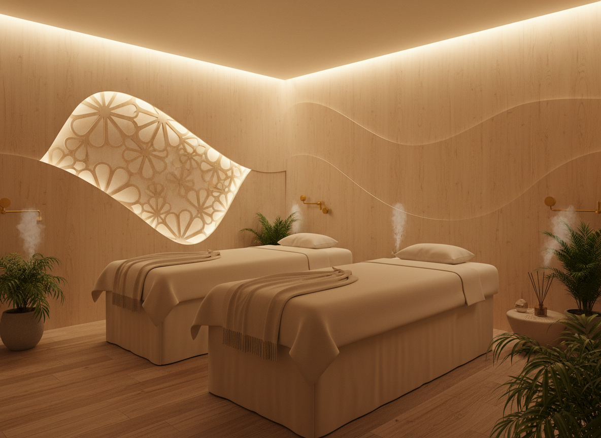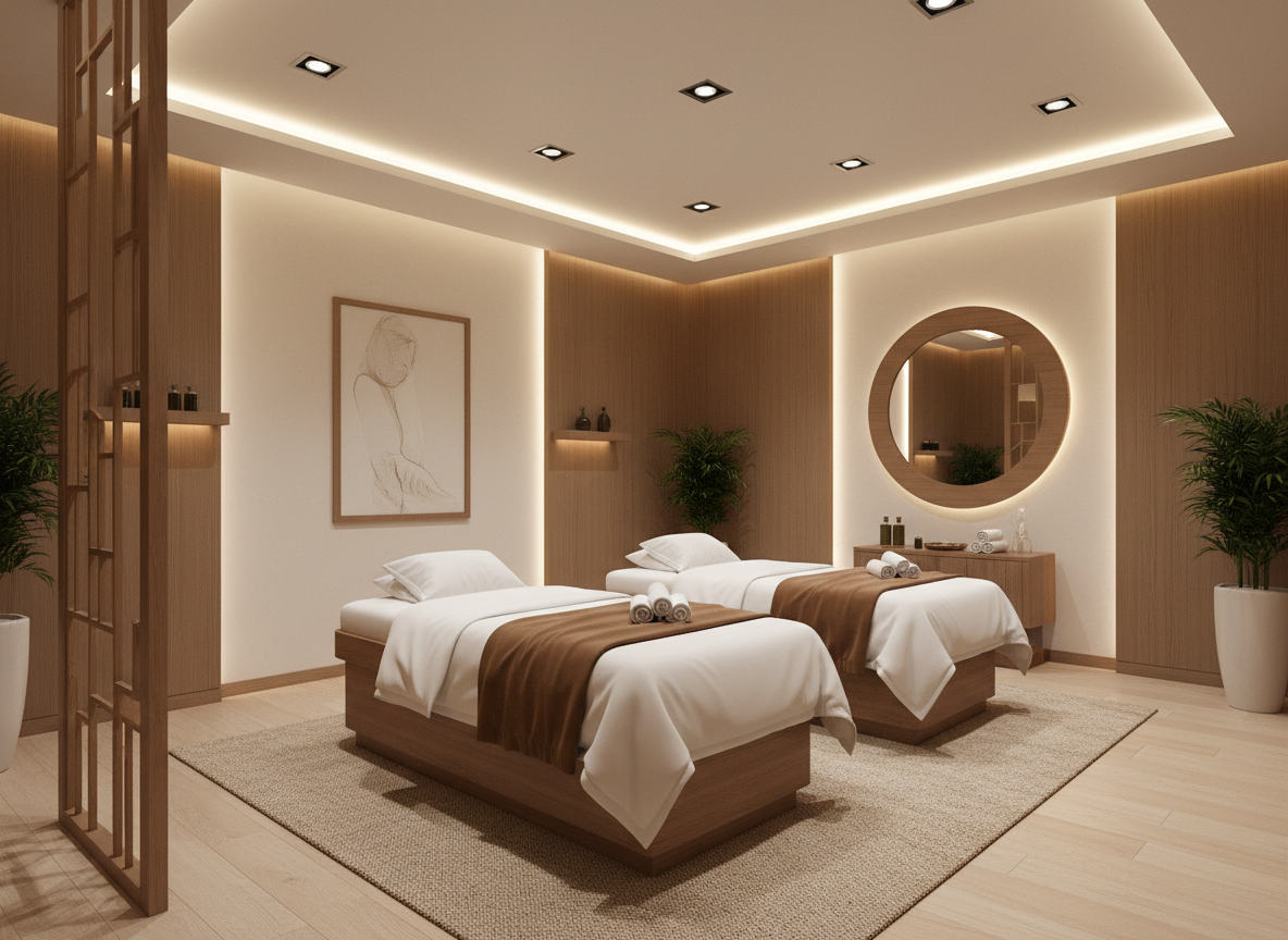 Không gian massage trị liệu khác với spa thông thường ở chỗ nó tập trung vào yếu tố trị liệu chuyên sâu như massage đá nóng, massage body thư giãn, massage bấm huyệt, vật lý trị liệu hay trị liệu tinh dầu. Các dịch vụ này yêu cầu phòng phải đảm bảo nhiệt độ ổn định, âm thanh cách âm tốt, ánh sáng dịu nhẹ và luồng di chuyển thuận tiện để giúp khách hàng đạt trạng thái thư giãn sâu nhất. Vì thế, thi công massage trị liệu luôn phải tuân theo các tiêu chuẩn khắt khe từ kiến trúc, kỹ thuật cho đến thẩm mỹ. Các vật liệu như gỗ, đá, mút cách âm, giấy dán tường chống ẩm, hệ thống điện – nước – điều hòa đều phải lựa chọn cẩn thận để tránh ẩm mốc, tiếng ồn và sự cố kỹ thuật.