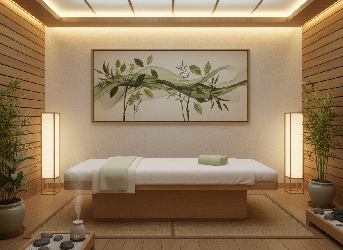 Thi công massage trị liệu theo phong cách Zen mang đến cho khách hàng cảm giác như bước vào một không gian tịnh dưỡng, nơi mọi giác quan được xoa dịu và tâm trí trở nên nhẹ nhàng.