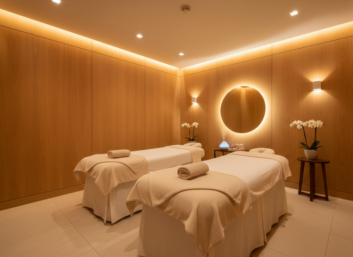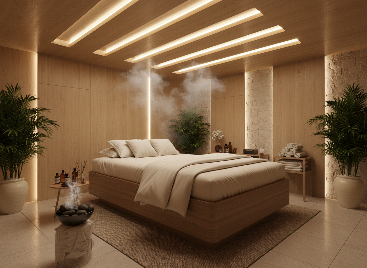 Ánh sáng trong phòng trị liệu cần dịu và có thể điều chỉnh độ sáng theo từng dịch vụ. Ánh sáng quá mạnh sẽ làm giảm hiệu quả thư giãn, trong khi ánh sáng quá tối lại gây khó khăn cho kỹ thuật viên.