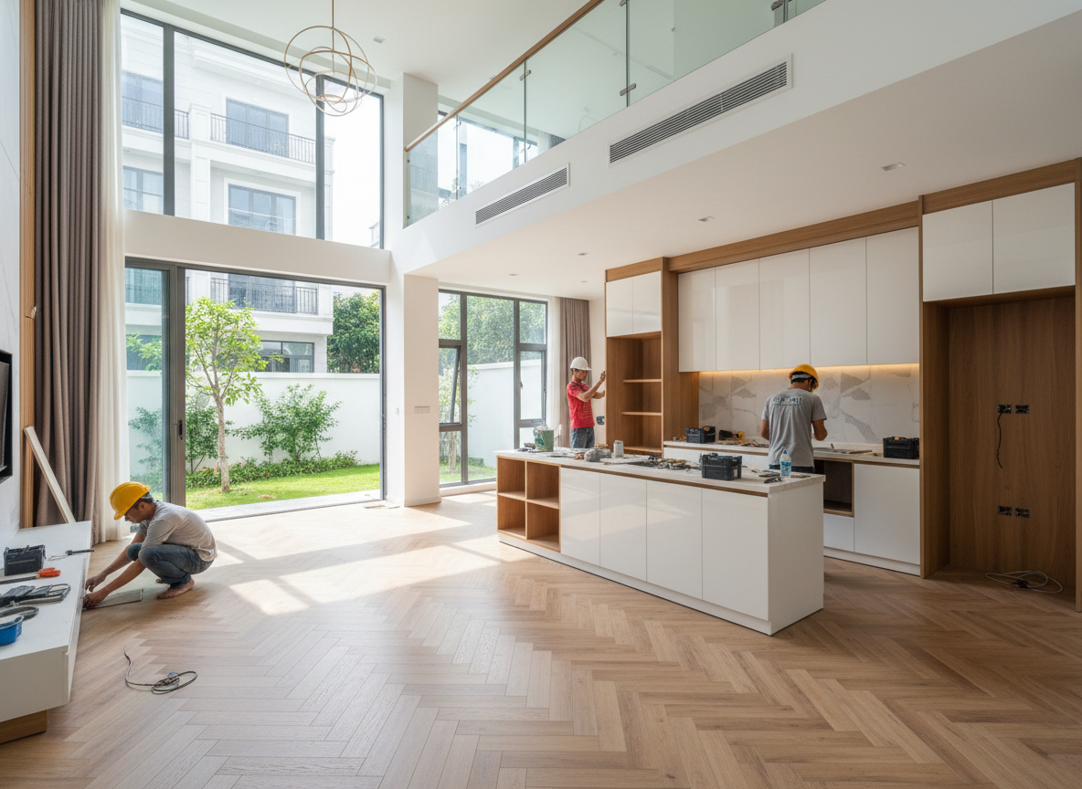 Một căn biệt thự đẹp chưa đủ, mà phải được thi công nội thất chuẩn mực, đúng kỹ thuật, đúng thẩm mỹ để thực sự trở thành không gian sống lý tưởng. Thi công nội thất không chỉ giúp hoàn thiện không gian mà còn giúp nâng tầm giá trị bất động sản, tạo nên môi trường sống tiện nghi, an toàn, thư giãn và thẩm mỹ lâu dài cho gia đình.