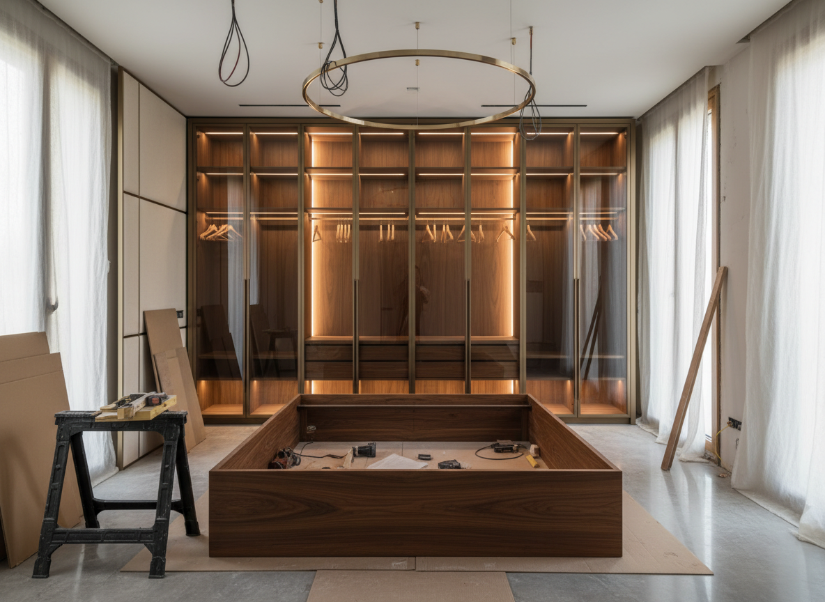 Thi công nội thất biệt thự cao cấp là quá trình hiện thực hóa toàn bộ bản vẽ thiết kế thành không gian thực tế, bao gồm: sản xuất đồ nội thất tại xưởng, thi công phần thô nội thất, lắp đặt hệ tủ – kệ – vách – trần – sàn – hệ thống ánh sáng – hệ thống điện nước – hoàn thiện bề mặt và bàn giao sử dụng. Toàn bộ quy trình này đòi hỏi: