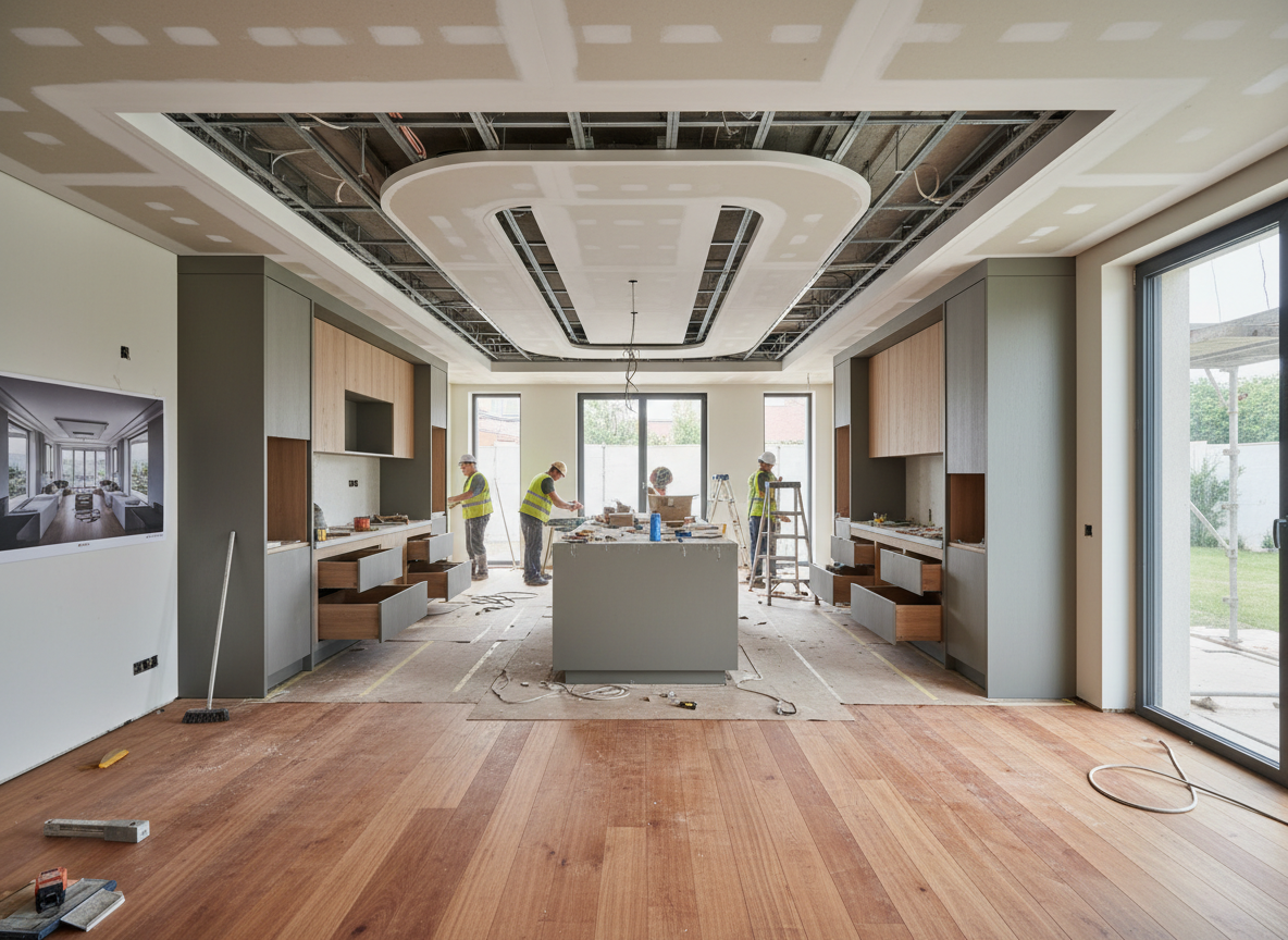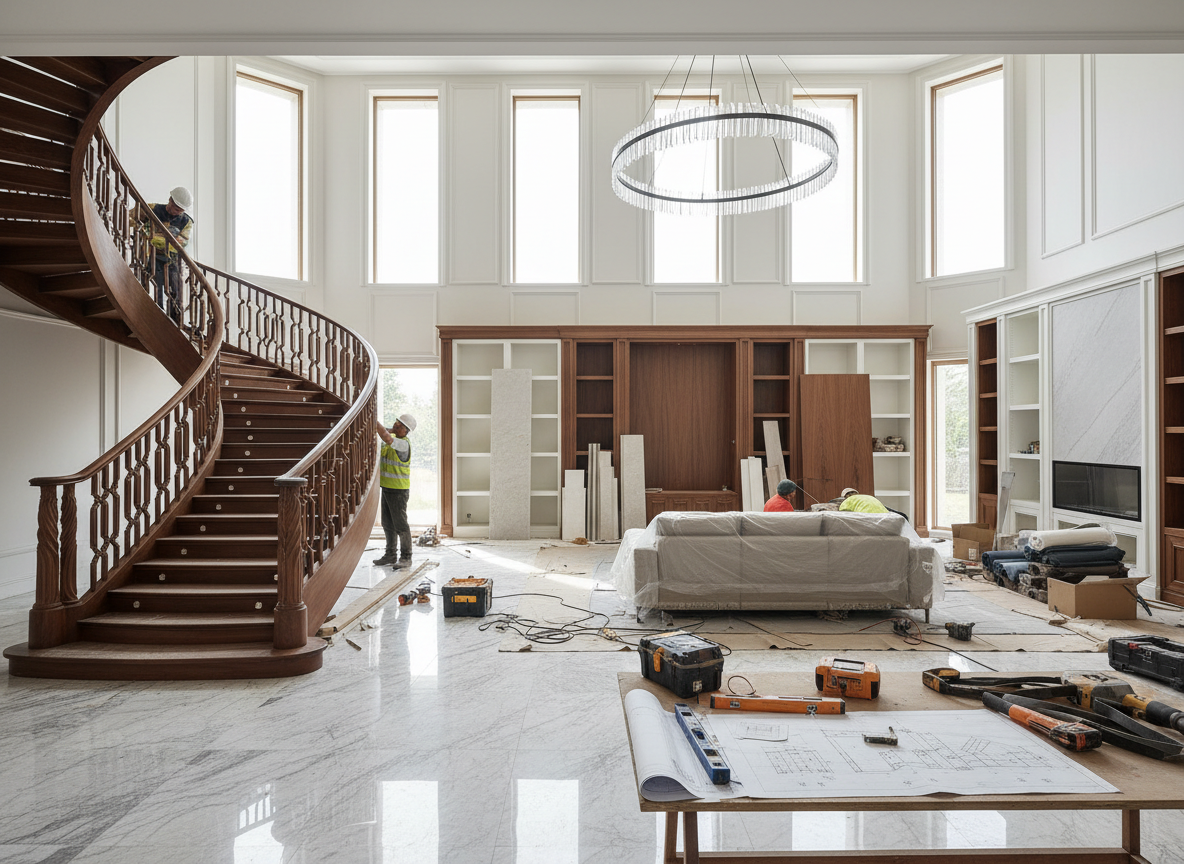 Sau khi hoàn thiện phần thô, các hạng mục nội thất được vận chuyển đến công trình và lắp đặt theo đúng vị trí, kích thước, cao độ đã được thể hiện trong bản vẽ. Quá trình này cần sự phối hợp nhịp nhàng giữa đội kỹ thuật, giám sát và thợ tay nghề cao để đảm bảo từng chi tiết khớp tuyệt đối với thiết kế.
