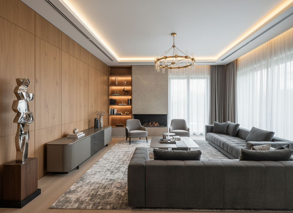 Biệt thự luxury tập trung vào vật liệu nhập khẩu, đá tự nhiên, gỗ óc chó, kim loại mạ PVD, da cao cấp. Thi công nội thất biệt thự đúng bản vẽ phong cách này đòi hỏi đội ngũ thợ tay nghề cực cao.