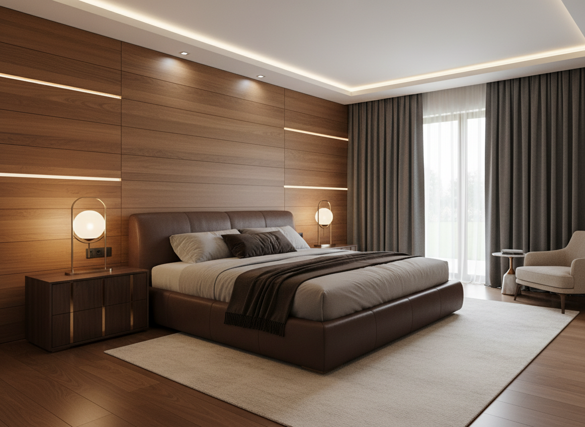 Gỗ công nghiệp cao cấp như MDF chống ẩm, HDF, plywood phủ veneer, laminate, acrylic giúp tối ưu chi phí nhưng vẫn đảm bảo thẩm mỹ và độ bền.