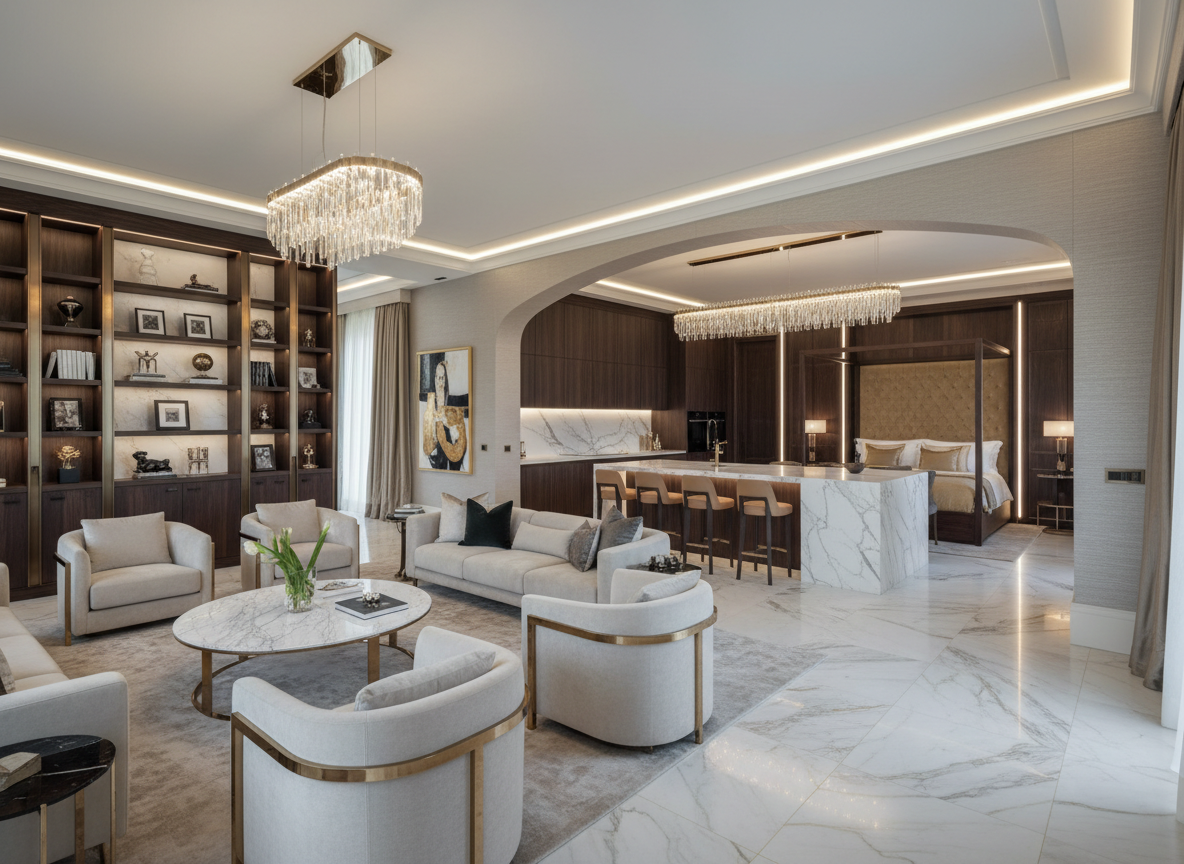 Phong cách Luxury hướng đến sự sang trọng tuyệt đối, đề cao vật liệu cao cấp, thiết kế độc bản và công nghệ hiện đại. Đây là phong cách thể hiện rõ nhất đẳng cấp của gia chủ.