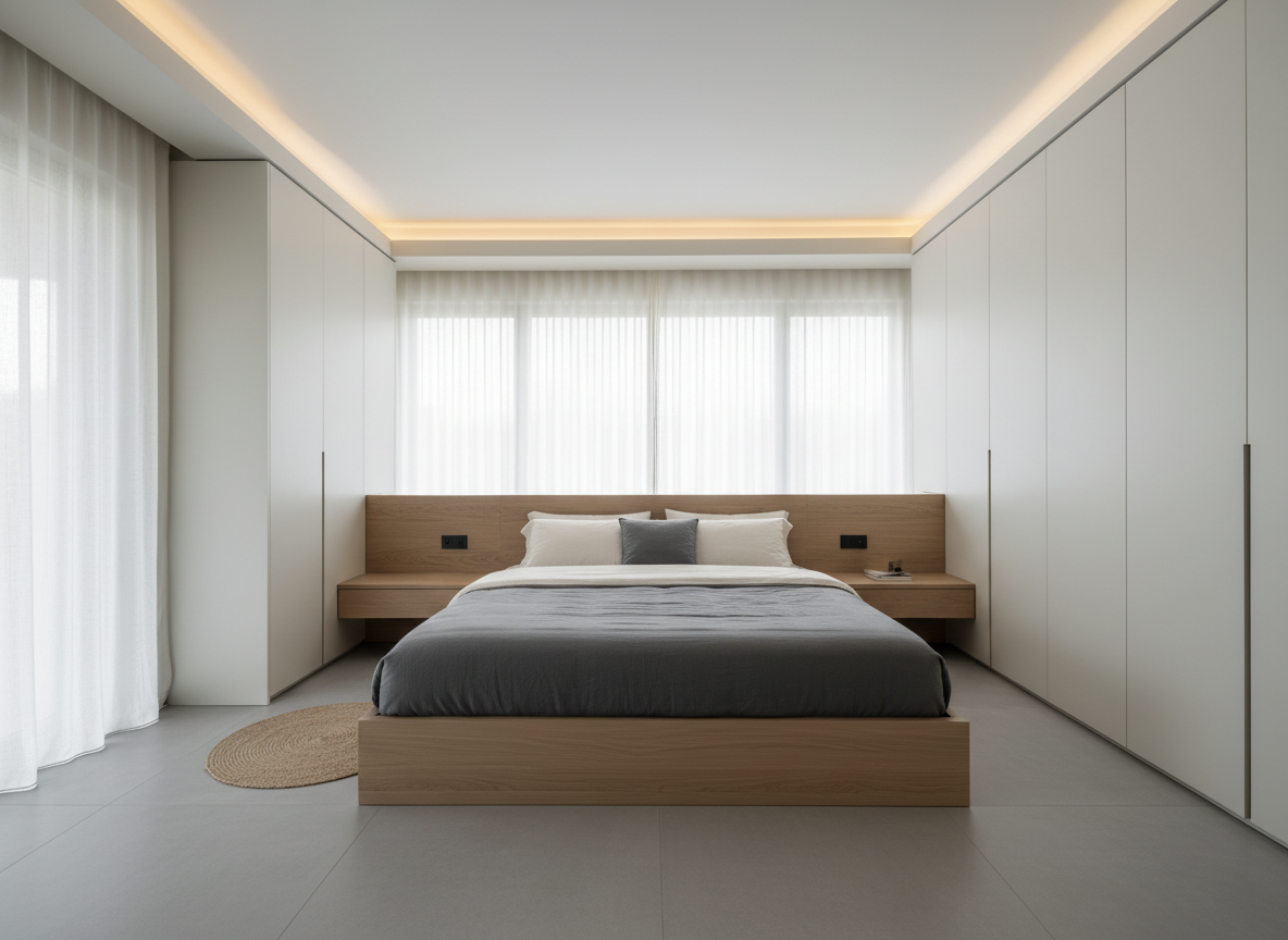 Phòng ngủ là nơi cần sự yên tĩnh tuyệt đối. Nội thất tối giản giúp: